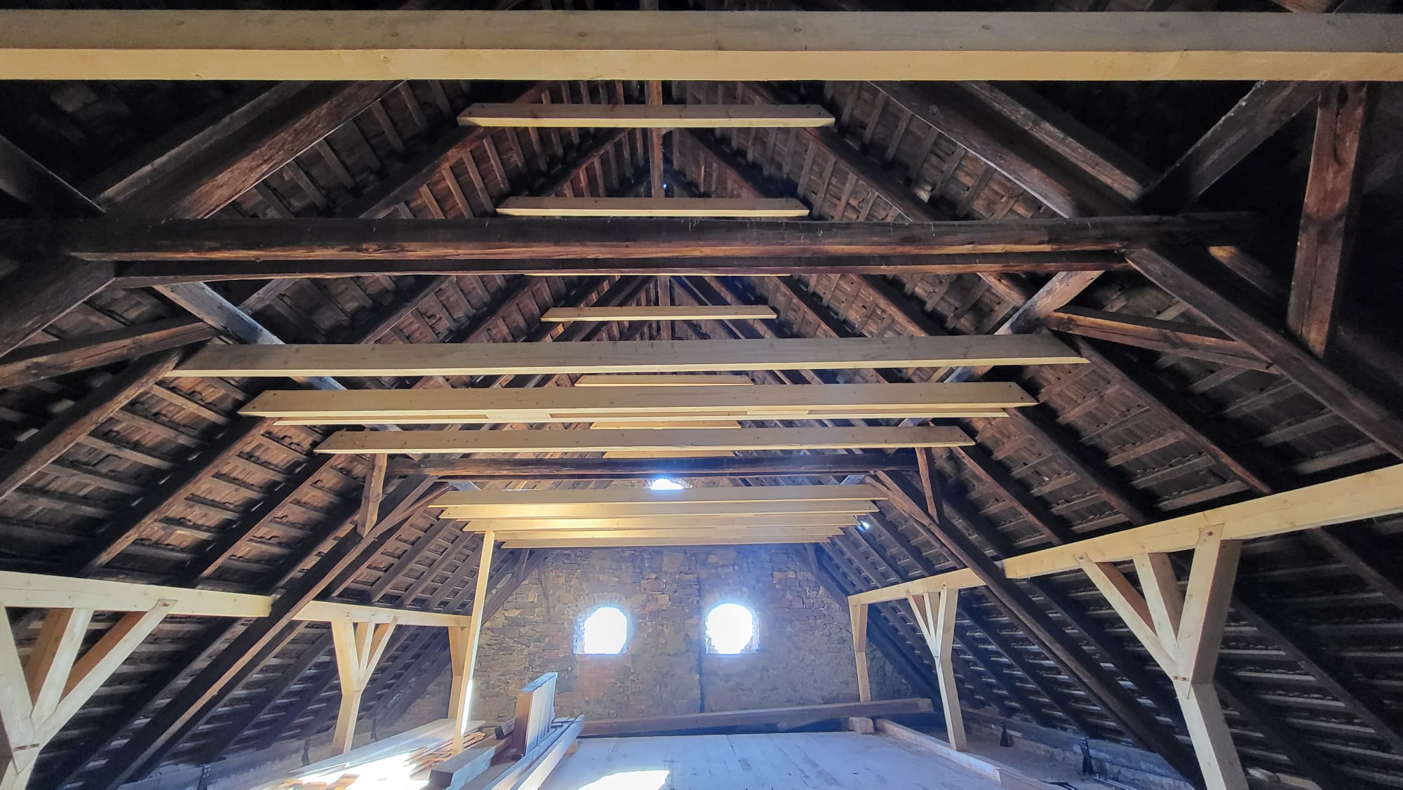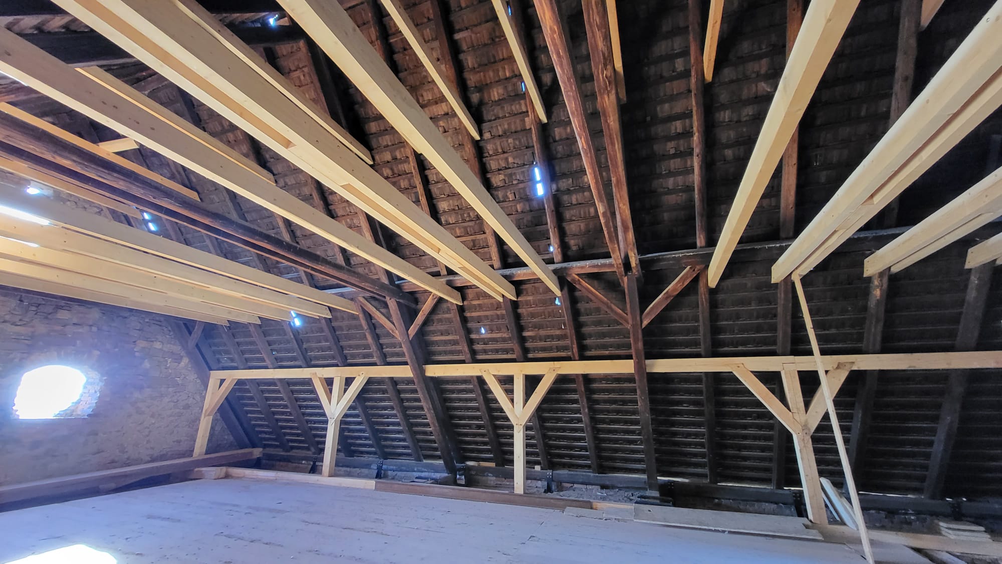 – remont i wzmocnienie uszkodzonej konstrukcji więźby dachowej.